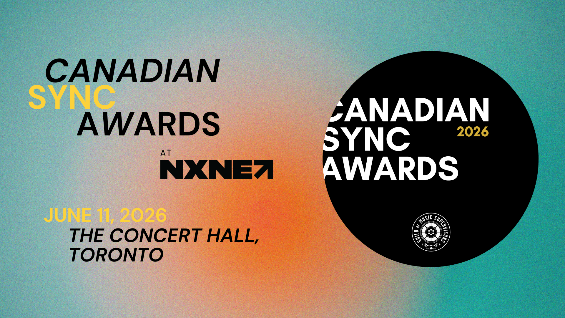 The Guild of Music Supervisors, Canada (GMSC) is proud to announce the sixth Canadian Sync Awards at NXNE, taking place on Thursday, June 11, 2026, at The Concert Hall in Toronto. In a milestone year marking the GMSC’s 10th anniversary, the event expands its reach through landmark partnerships with NXNE and Billboard Canada, and introduces Sound + Vision - a full day of industry education and networking on June 10, 2026, at The W Hotel.